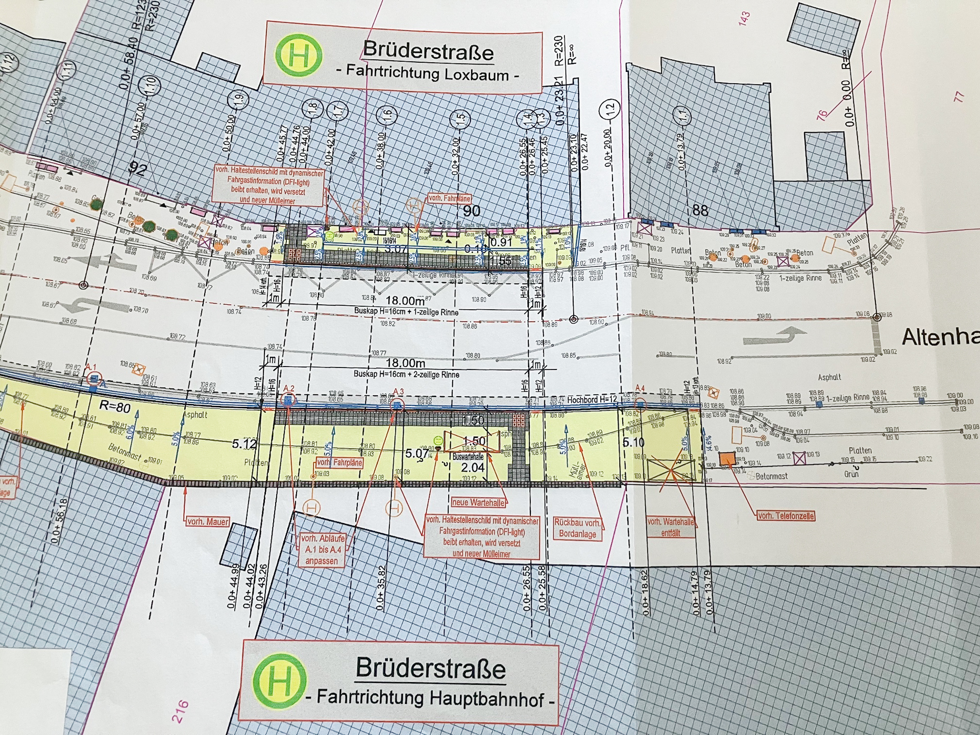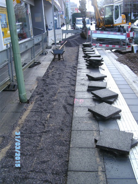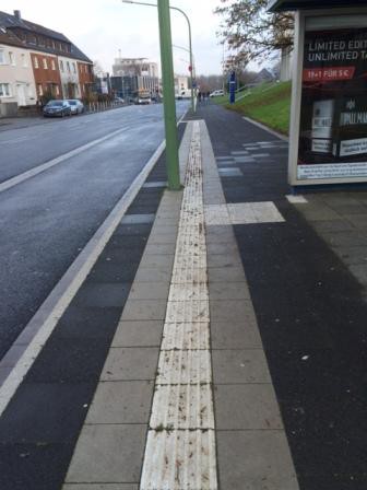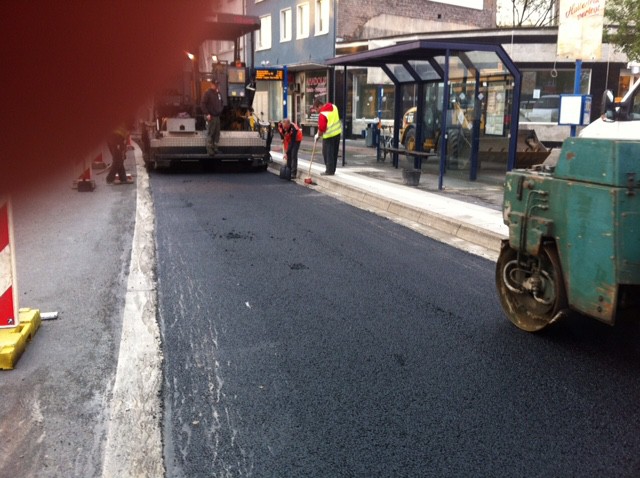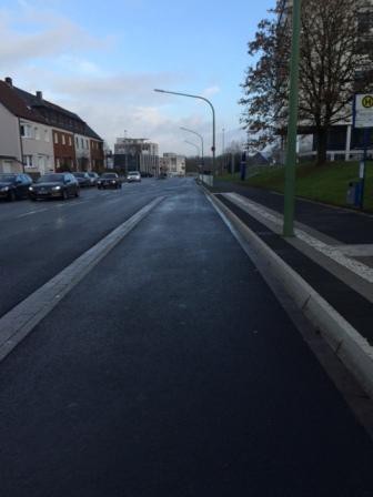 Bei der Sanierung der Bushaltestelle in der Haldener Straße haben wir den Gehweg neu asphaltiert, gepflastert und behindertengerecht gestaltet. Der Busbeschleunigungsstreifen wurde ebenfalls neu gebaut.