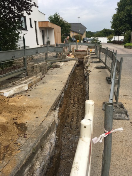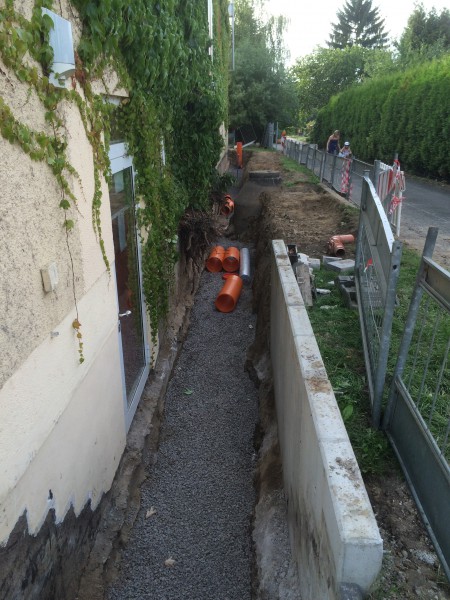 Im Heigarenweg in Hagen-Fley verlegten wir neue Kanalleitungen. Dabei wurden sowohl Regen- als auch Schmutzwasserleitungen neu verlegt. An die neuen Kanalleitungen wurden sowohl die dortige Kindertagesstätte als auch ein Privatgrundstück angeschlossen. Im Anschluss daran whaben wir die notwendigen Drainage- und Abdichtungsarbeiten durchgeführt.